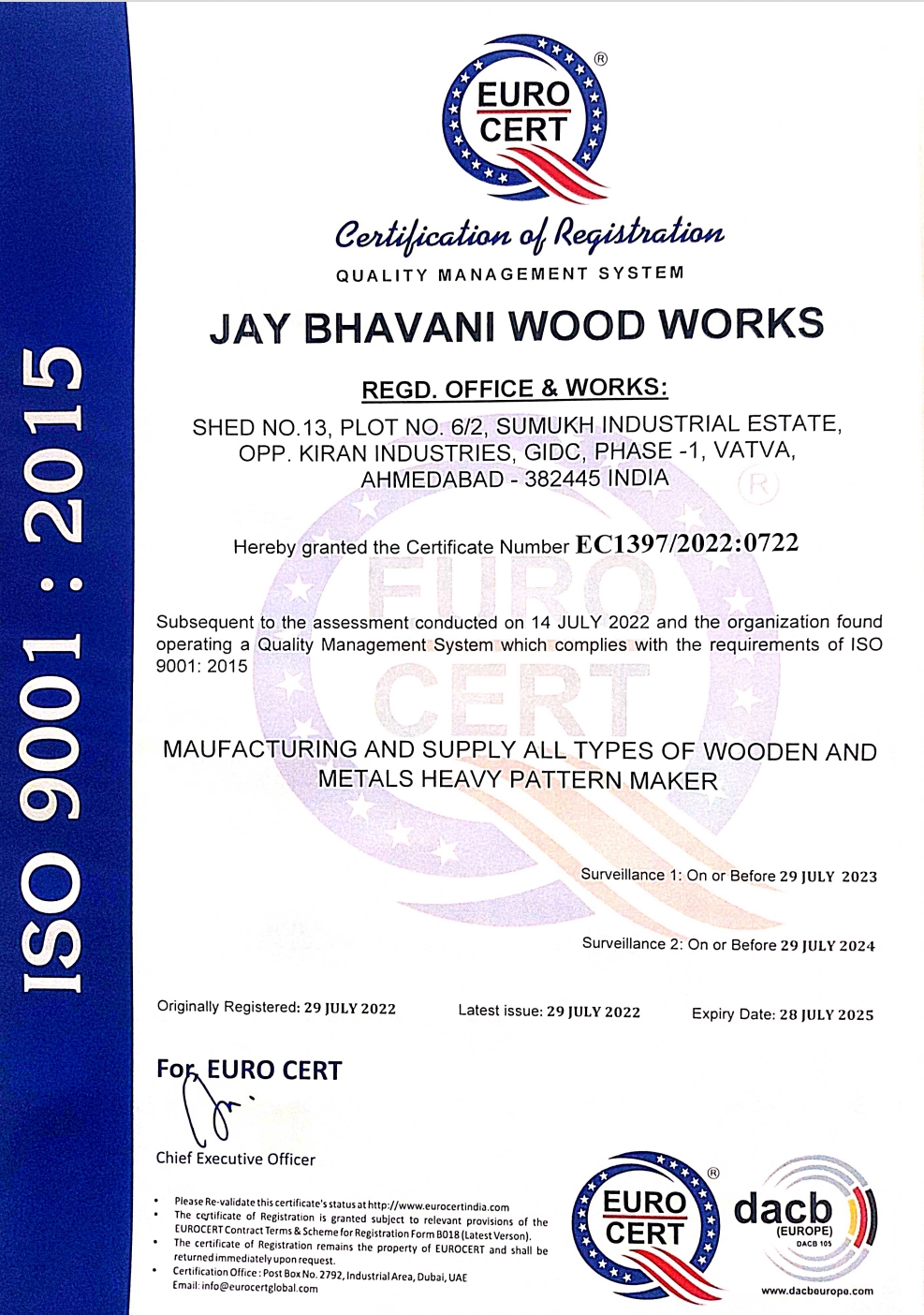 Welcome to Jay Bhavani Wood Works, your trusted partner in pattern making since 1985. Based in Ahmedabad, we specialize in crafting high-quality patterns for various industries. With a commitment to excellence, we offer Birch Plywood, Teak Wood, Aluminum, and SG Iron patterns for long-lasting durability.